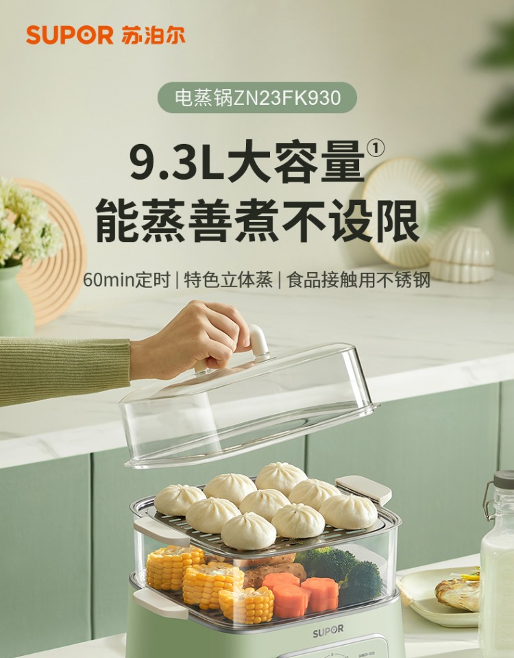 苏泊尔电蒸锅炖蒸煮一体小型电蒸箱蒸笼家用三层多功能多层早餐机