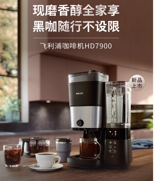 飞利浦小型家用全自动咖啡机研磨一体办公室现磨美式HD7900
