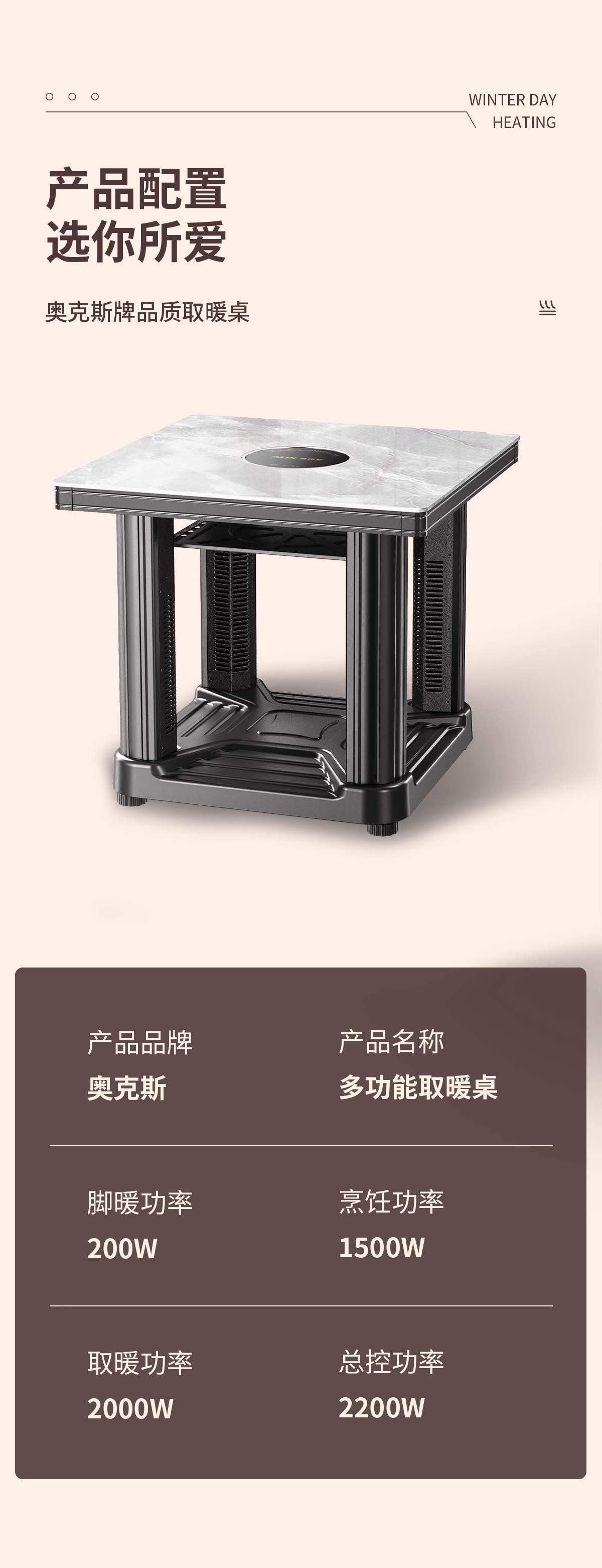 奥克斯取暖桌电暖桌四方烤火桌家用电暖炉电烤火炉烤火茶几电烤桌