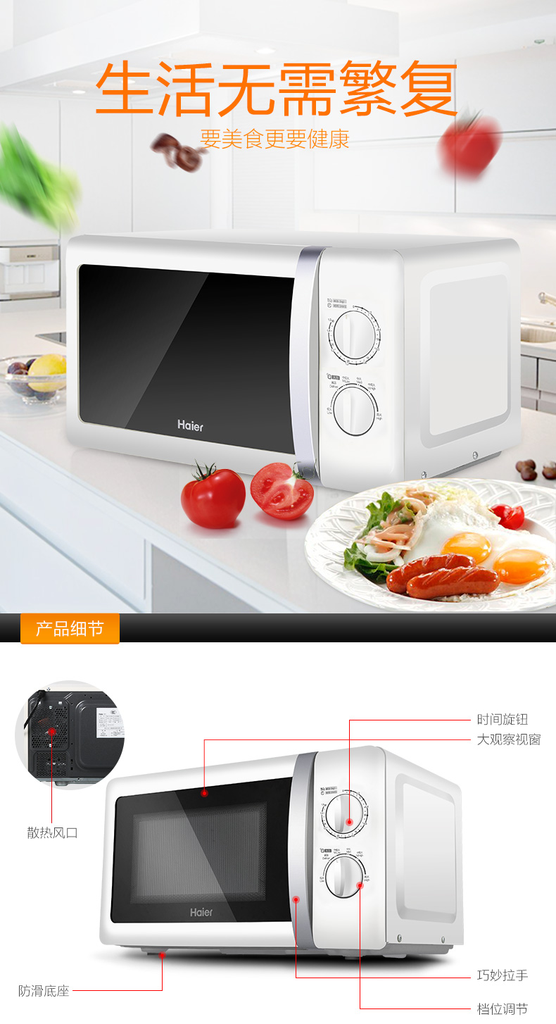 美的(Midea)M1-L213C 快捷微波炉 微电脑操控 360°转盘加热 智能蒸煮菜单 21升