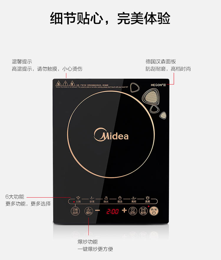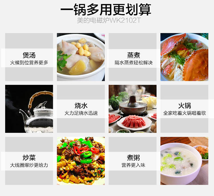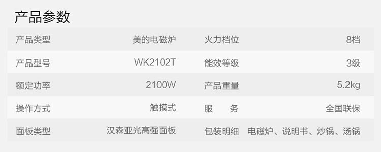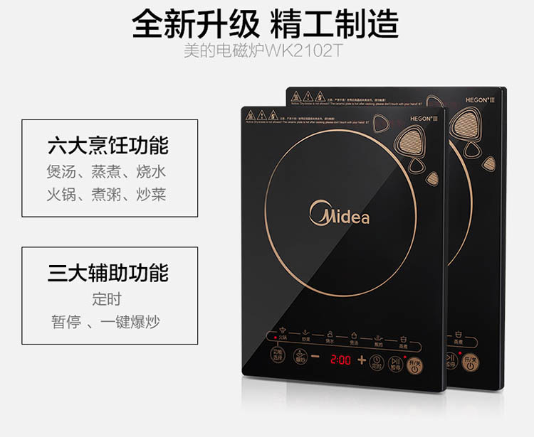 美的(Midea) WK2102T 全网畅销品质信赖整版触摸式电磁炉(赠汤+炒锅)