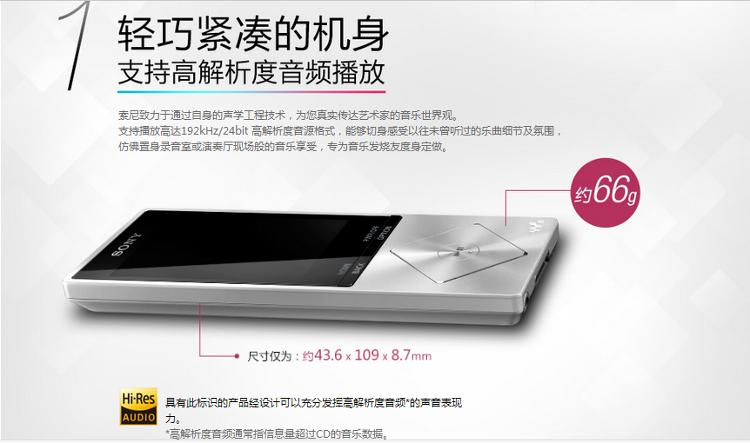 索尼(SONY)NWZ-A15 HIFI无损音乐播放器 16G内存 walkman 黑色