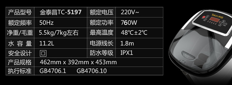 泰昌牌金泰昌 TC-5197 全自动按摩足浴盆(足浴器)