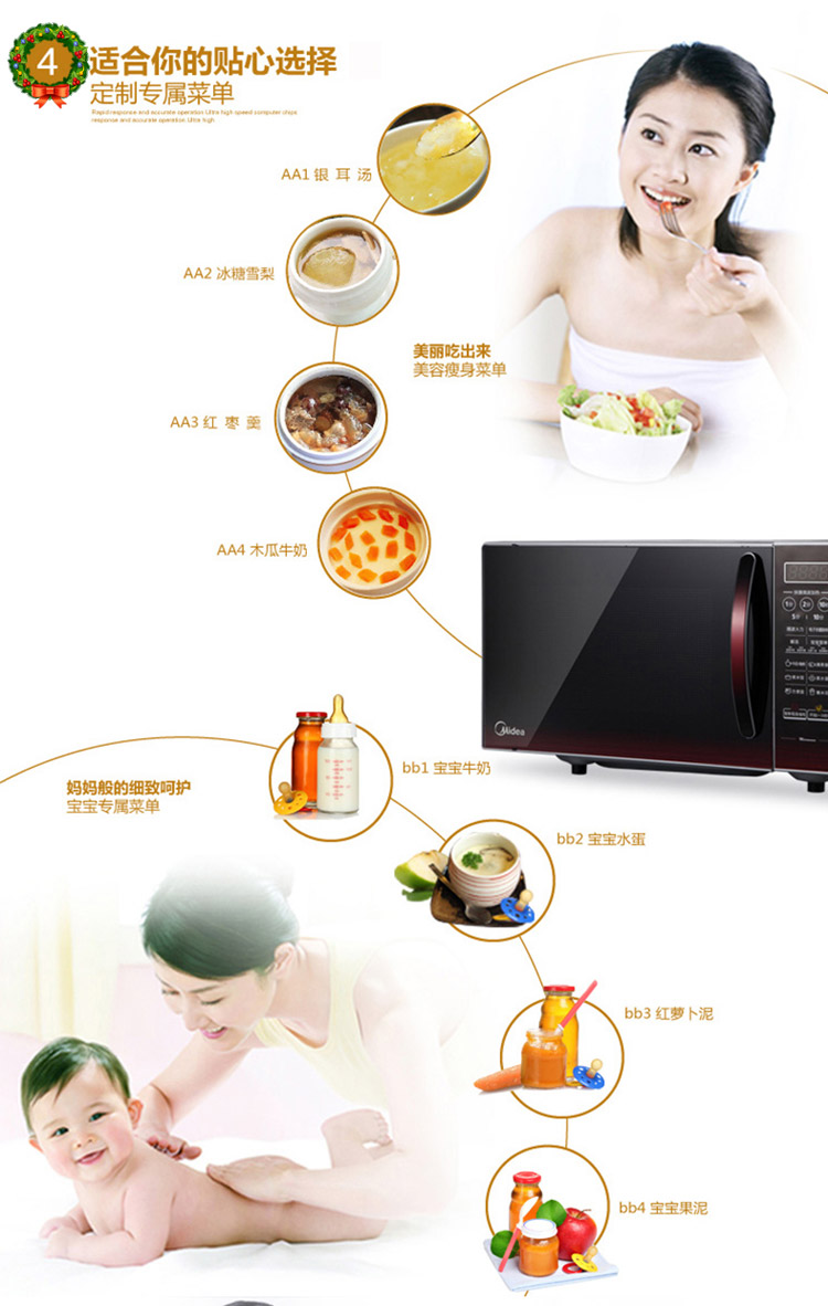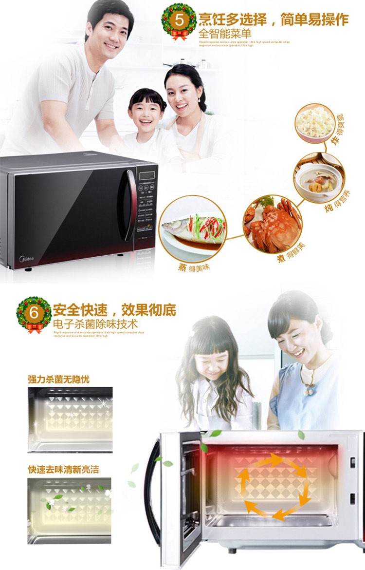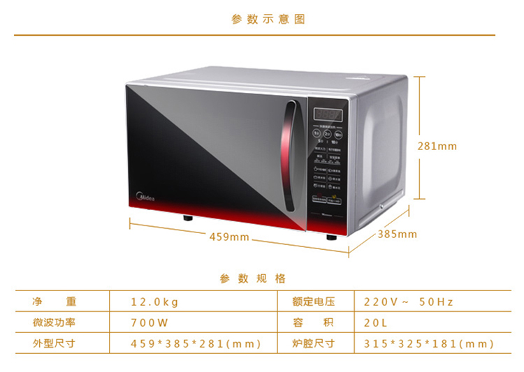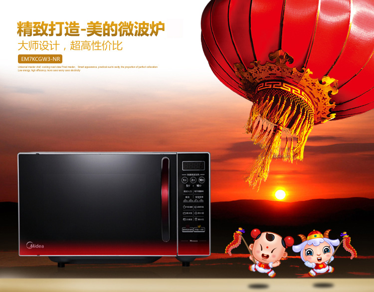 美的(Midea) EM7KCGW3-NR 微波炉 微电脑 平板 薄膜按键