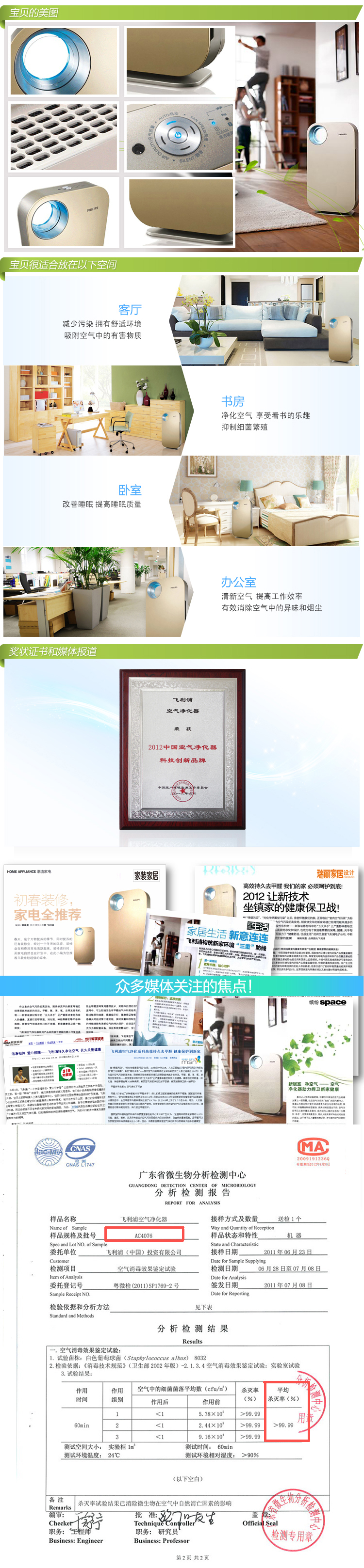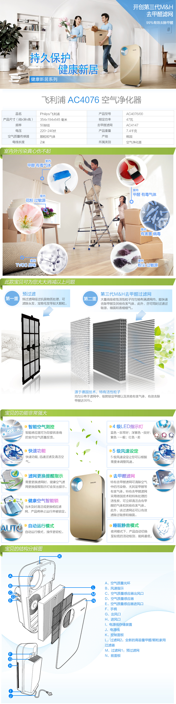 飞利浦(Philips) AC4076 空气净化器 (香槟色)