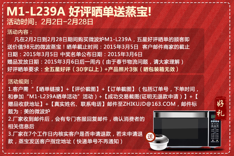 美的(Midea)M1-L213C 快捷微波炉 微电脑操控 360°转盘加热 智能蒸煮菜单 21升