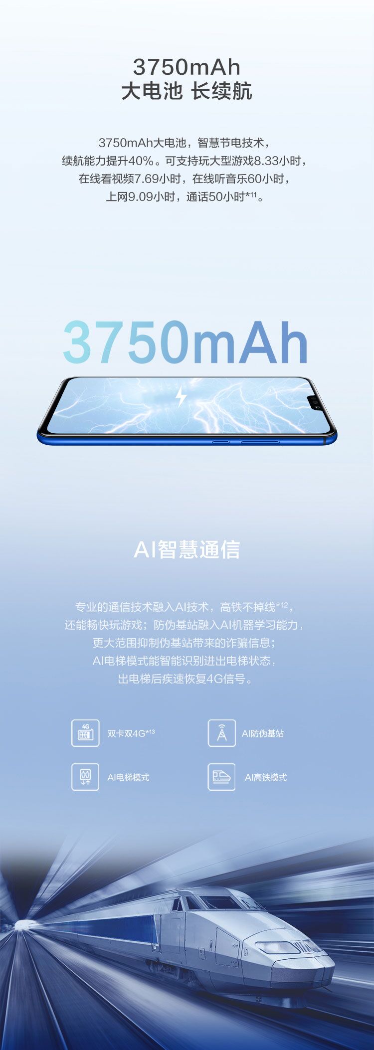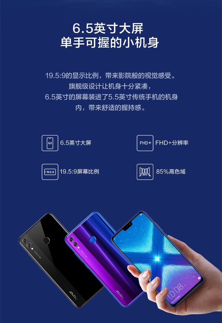 荣耀8X 千元屏霸 91%屏占比 2000万AI双摄 4GB+64GB 幻夜黑 移动联通电信4G全面屏手机 双卡双待