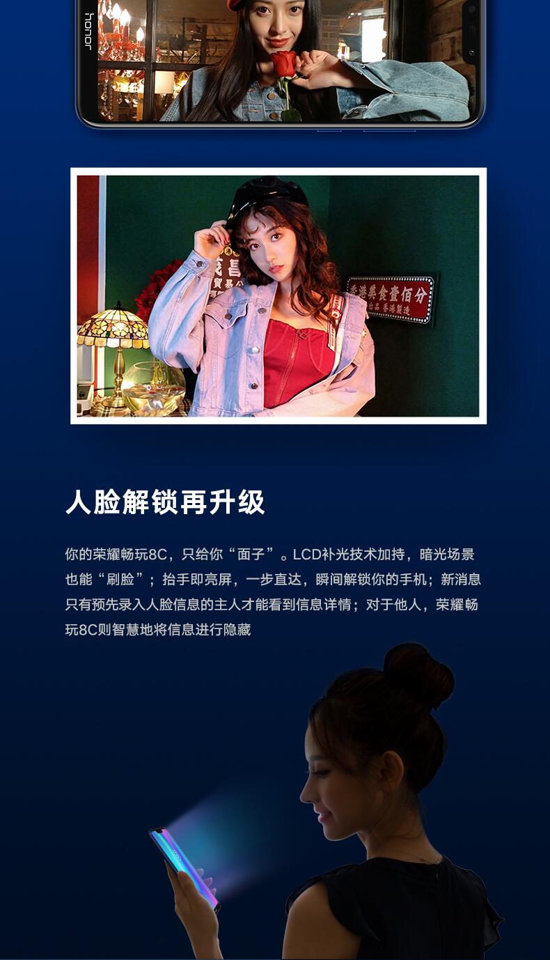 荣耀畅玩8C两天一充 莱茵护眼 刘海屏 全网通版4GB+32GB 铂光金 移动联通电信4G全面屏手机 双卡双待