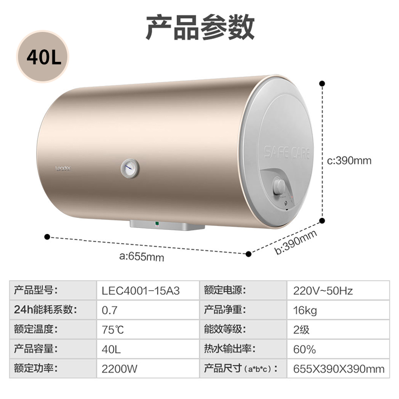 海尔出品统帅40升电热水器50家用小型速热60卫生间洗澡租房储水式 专利防电墙 加厚保温层 小巧节能