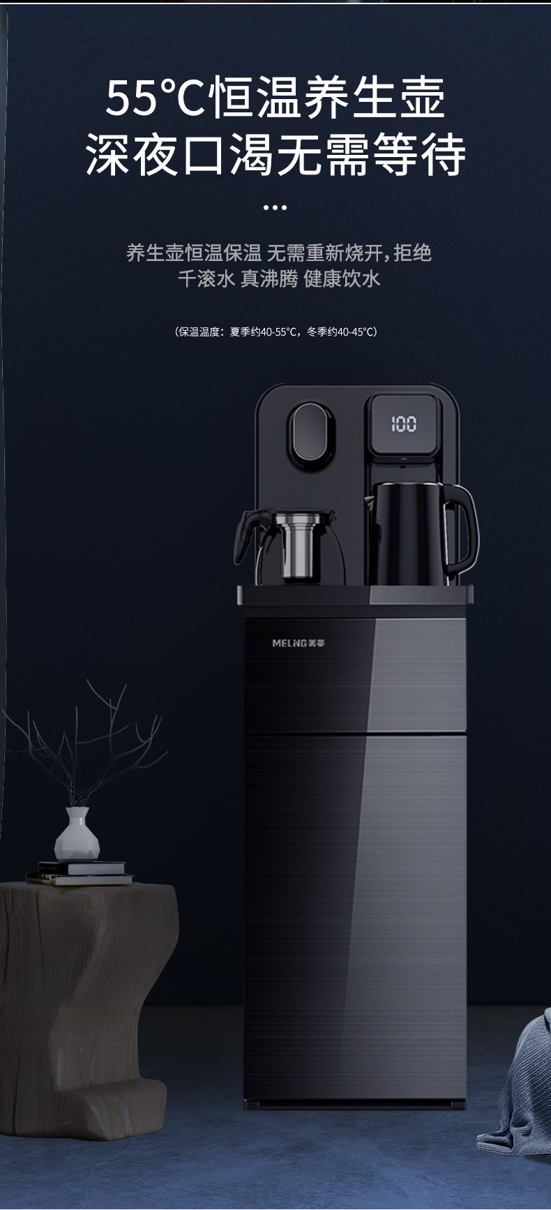 美菱立式茶吧机家用智能全自动冷热多功能桶装水饮水机下置水桶