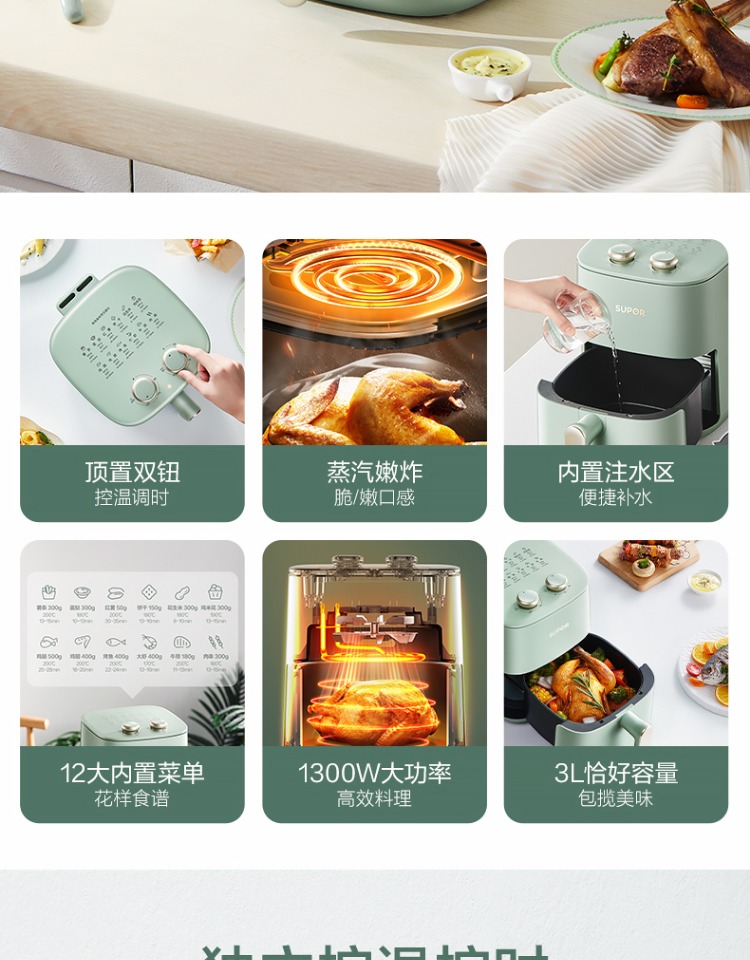 苏泊尔新款空气炸锅家用3l小容量全自动电炸锅官方旗舰店十大品牌