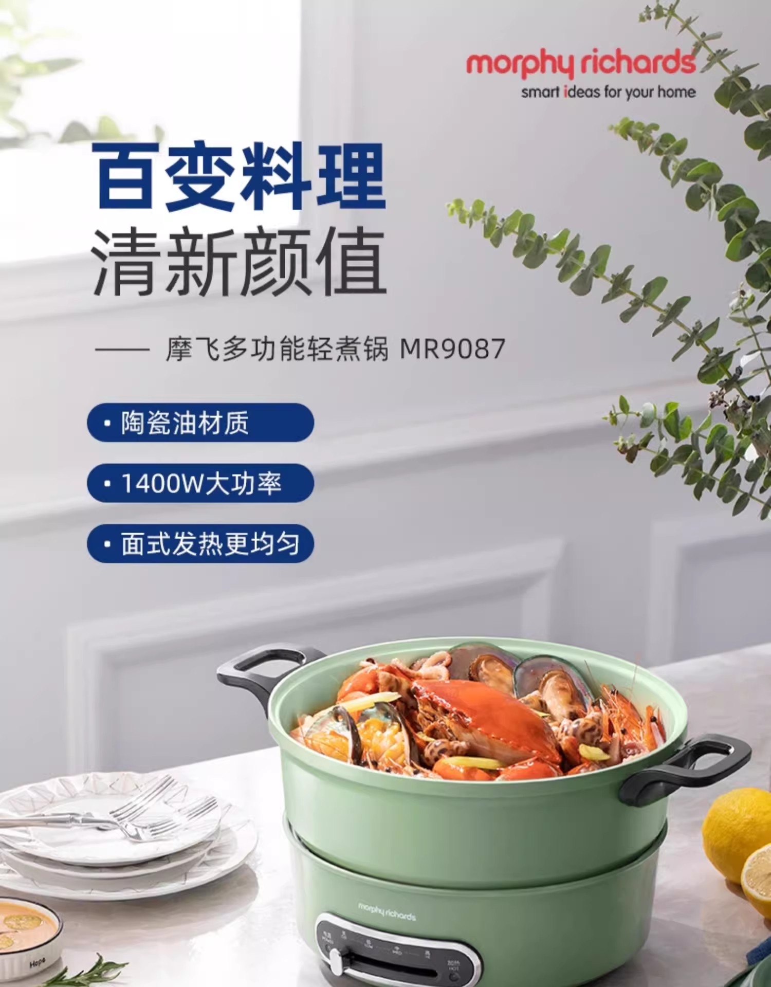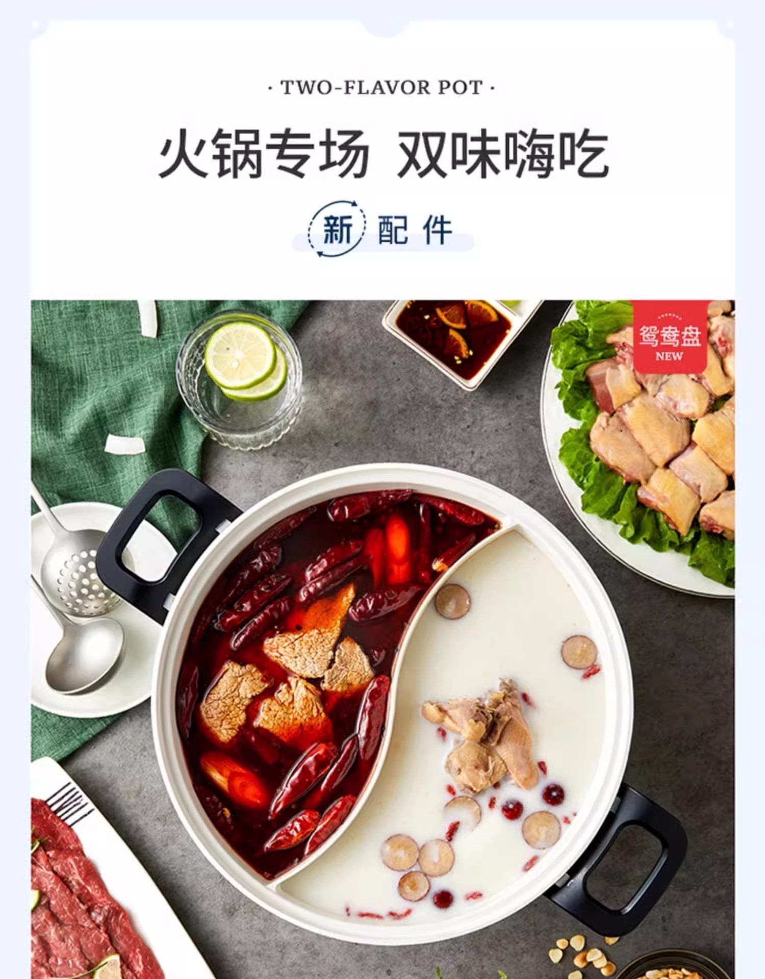 摩飞MR9087多功能电火锅家用分体式鸳鸯火锅烧烤肉电煮锅料理锅