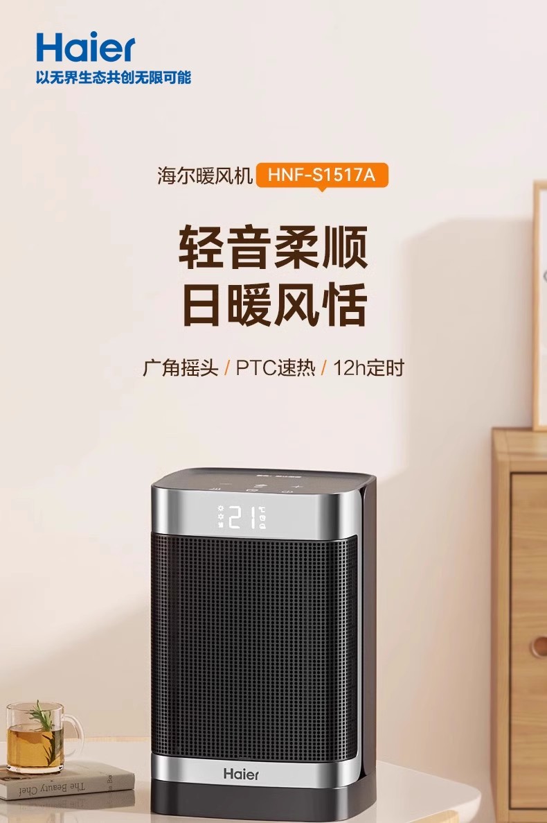 • 海尔暖风机家用取暖器节能电暖气器冬季小太阳电热风机小型办公室