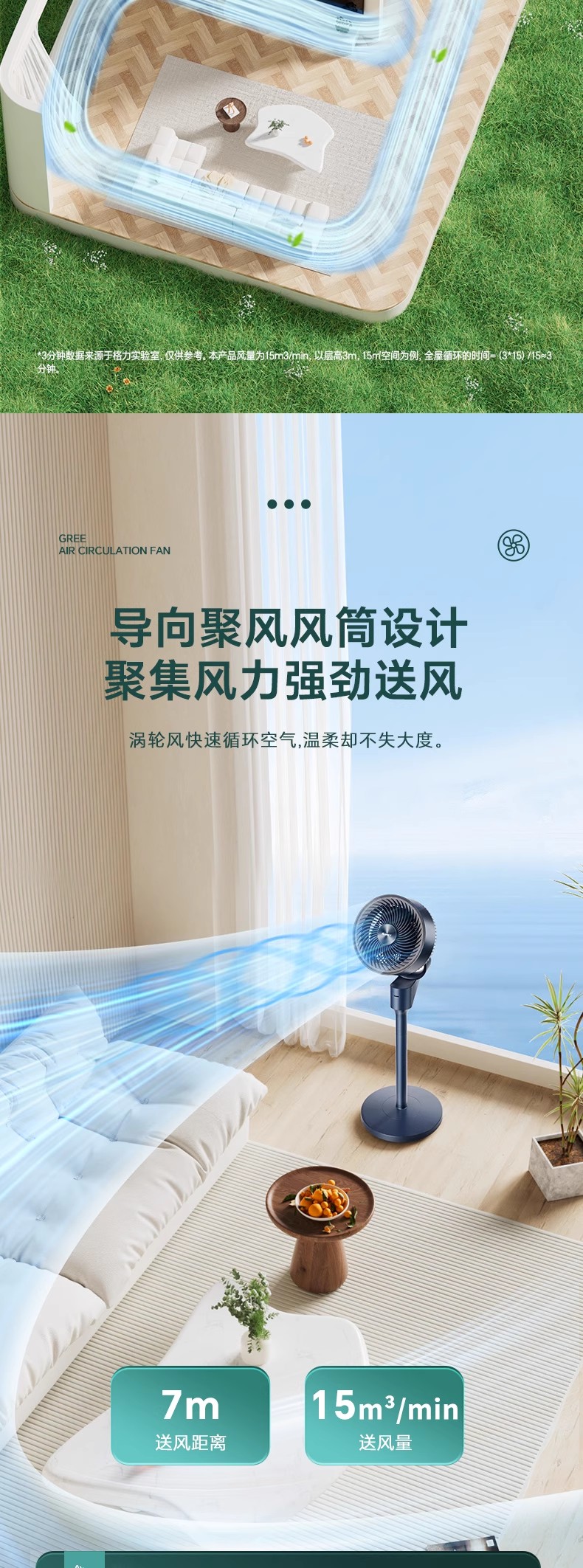 格力空气循环扇家用落地扇香薰节能音轻台地两用大风力电风扇