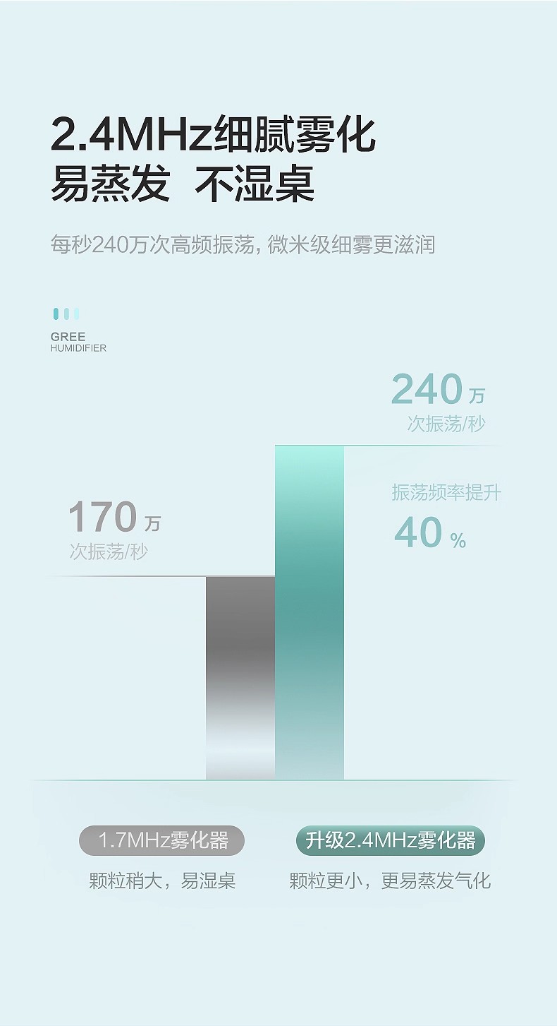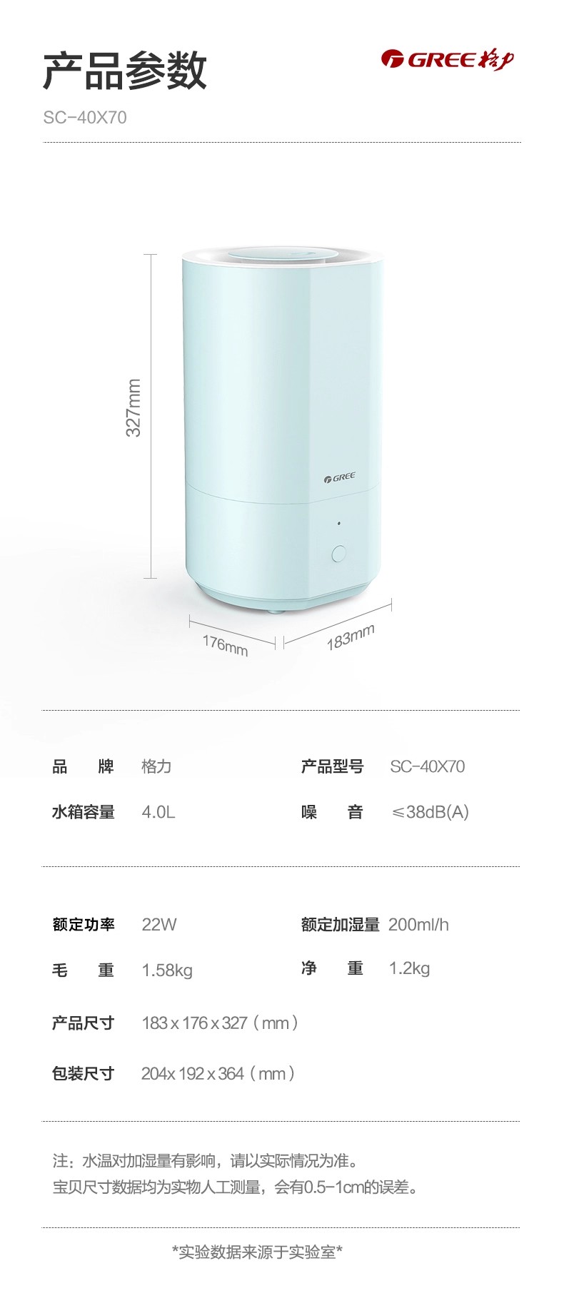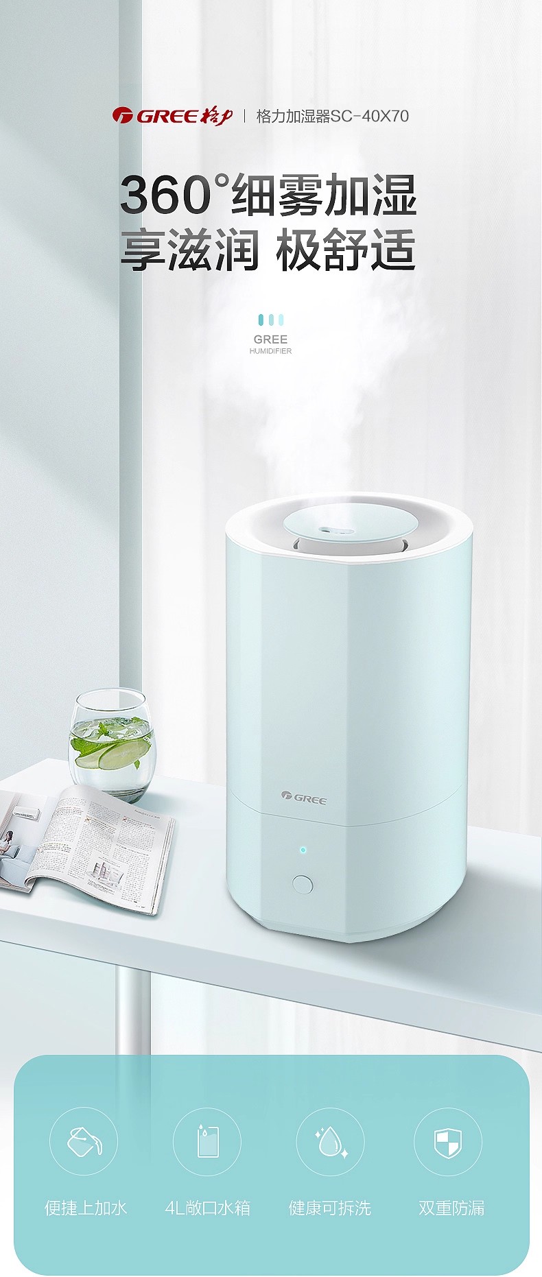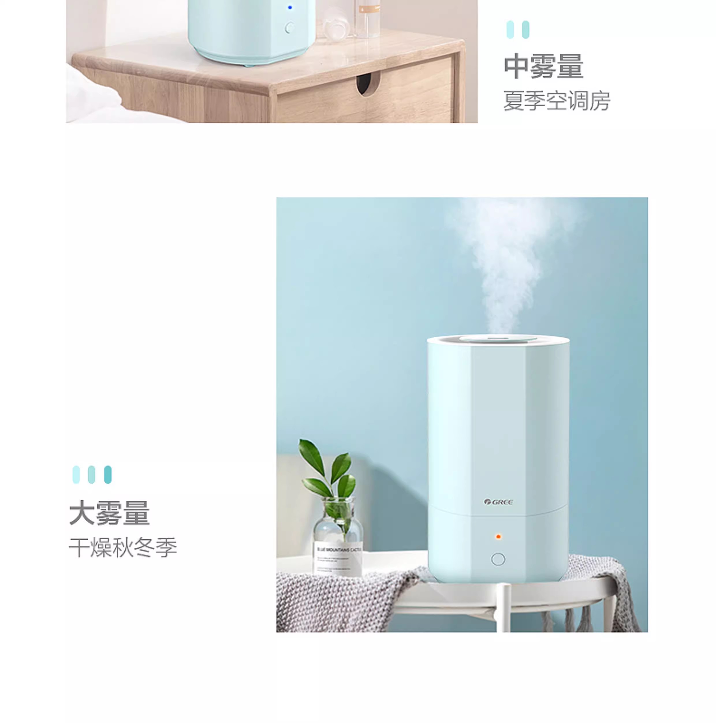 格力4L超声波加湿器家用室内轻音360°旋转喷雾防漏空调房增湿器