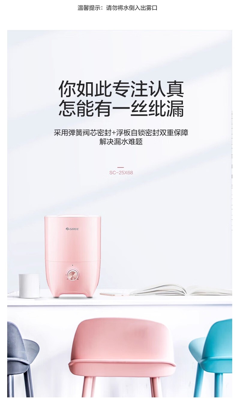 格力加湿器迷你低噪音2.5L办公室卧室家用香薰盒加湿孕妇婴儿可用