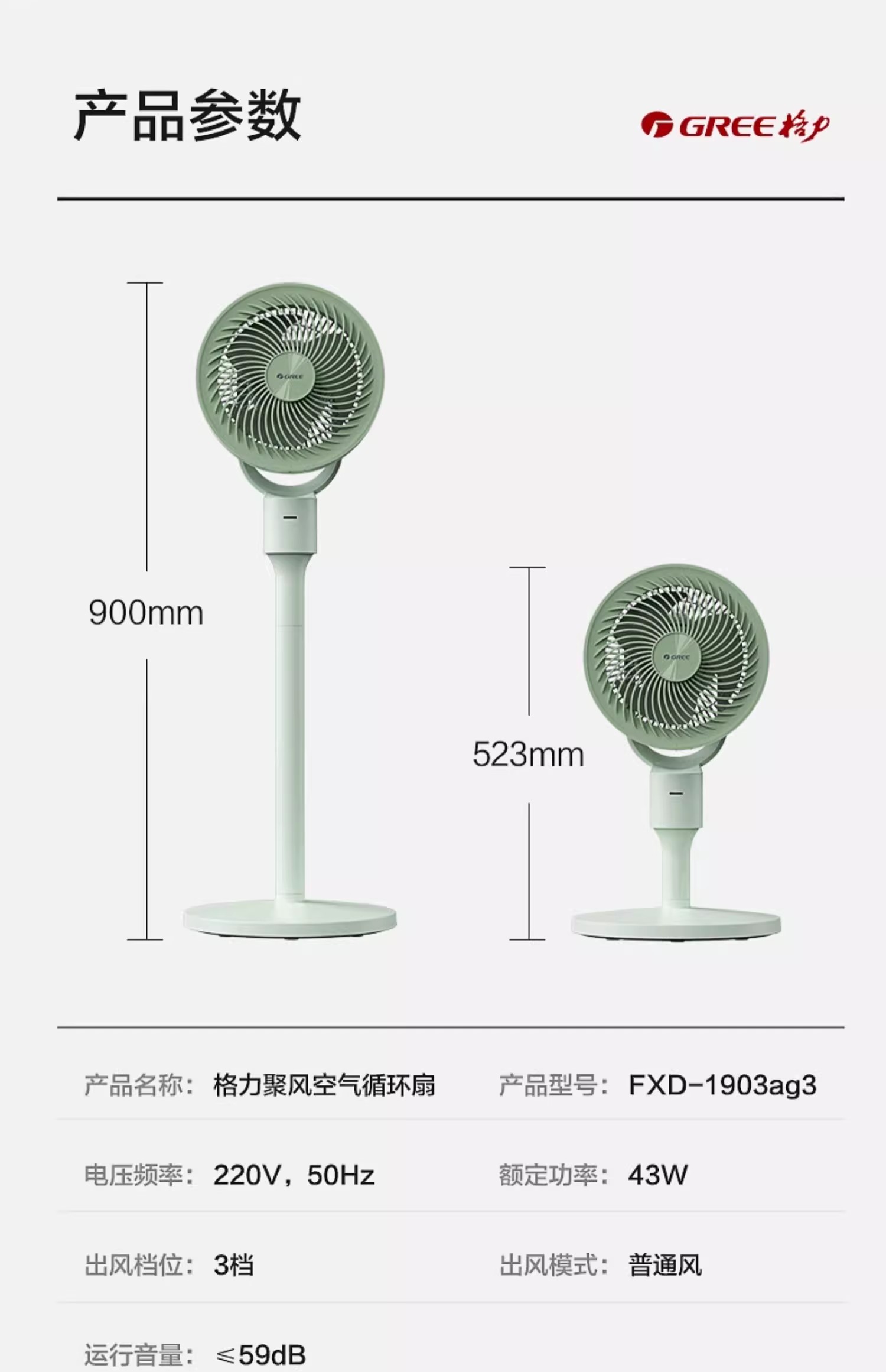 格力新款空气循环扇家用大风力电风扇宿舍台地两用三挡摇头落地扇