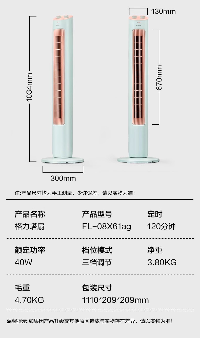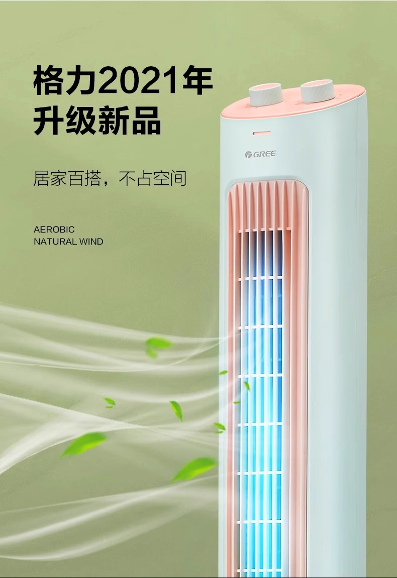格力塔扇小无叶电风扇家用宿舍立式落地扇摇头节能省电扇